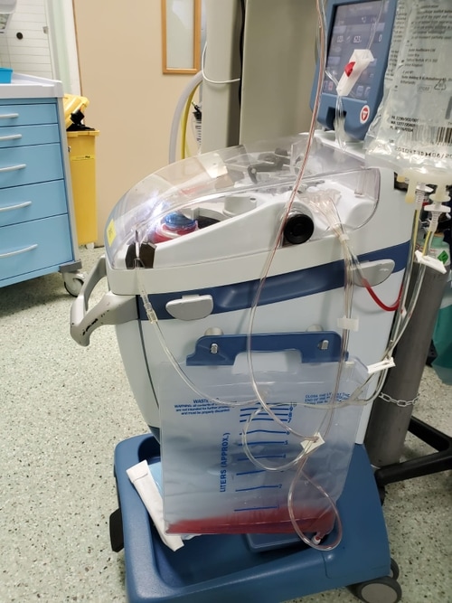 A cell saver is an instrument that collects a patient’s own blood during surgery washes this blood and then reinfuses this to the patient, providing them with a safe product for reinfusion.